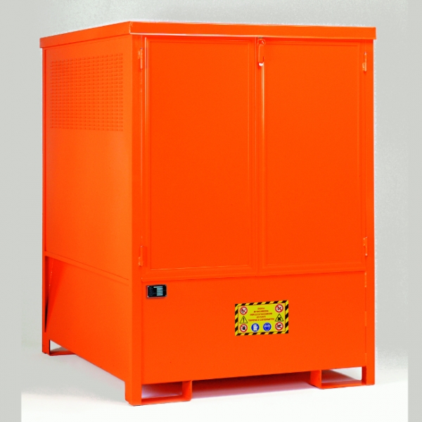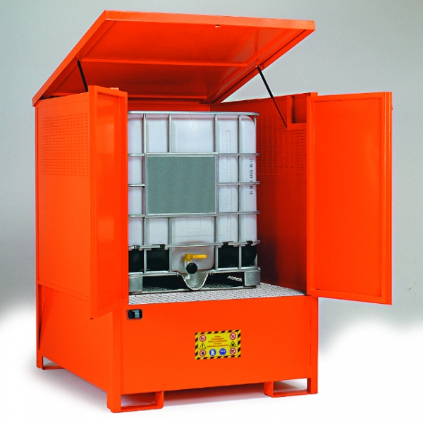 This storage cabinet is suitable for the outside safe storage of 1000 litre IBC's (Intermediate Bulk Containers) containing flammable or hazardous materials. Constructed of sheet steel with a certified steel sump.