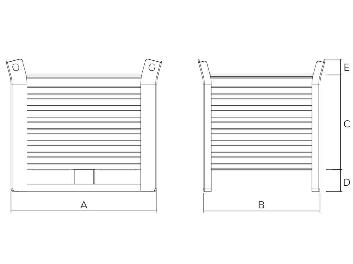 These heavy duty stacking steel stillages have a capacity of 1500-2000kg and have a sheet metal door in either the short or long side and forklift skids on the alternate side to the door.