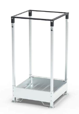 This adjustable bulk bag holder has a capacity of 1800L. the posts are secured by a bolt and have extra bolt holes to allow the post to be adjustable, these units are stackable due to their cupped feet.