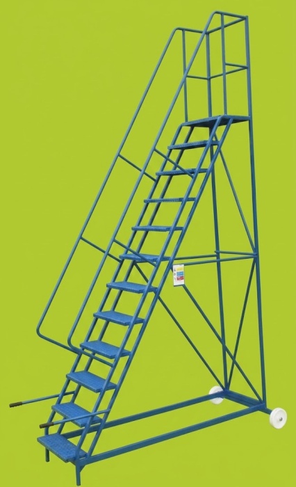 The mobile ladder is fitted with our industrial hi-grip step as standard and safety operating sticker.