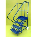 Most mobile steps used in warehouses have a slope of 60 degrees and a rise (height between treads) of 250mm. This means that you have to always climb the stairs facing the treads, which means you have to go down backwards.