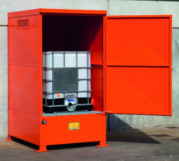 This storage cabinet is suitable for the outside safe storage of 1000 litre IBC's containing flammable or hazardous materials. Constructed of sheet steel with a certified steel sump.