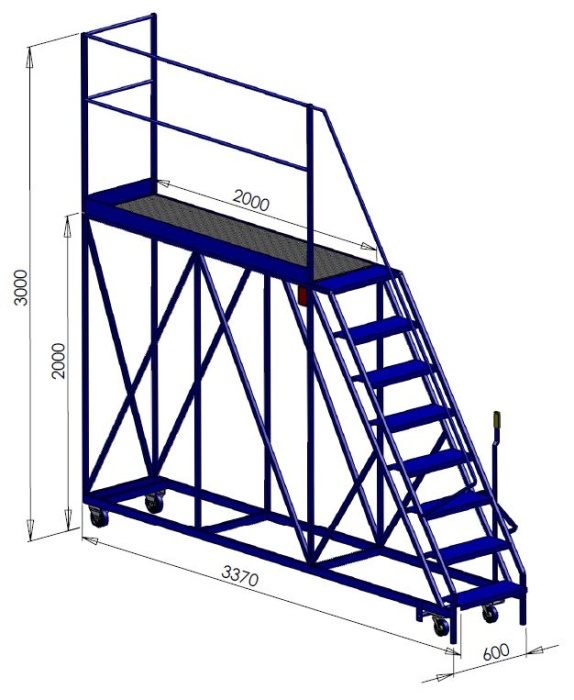 The mobile platform steps are brand new and come in standard RAL5010 Blue and they have a plated welded on for a safety sticker. For extra safety there is a brake lever, the brake lever will stop the steps moving on their own when a user plans to use them.