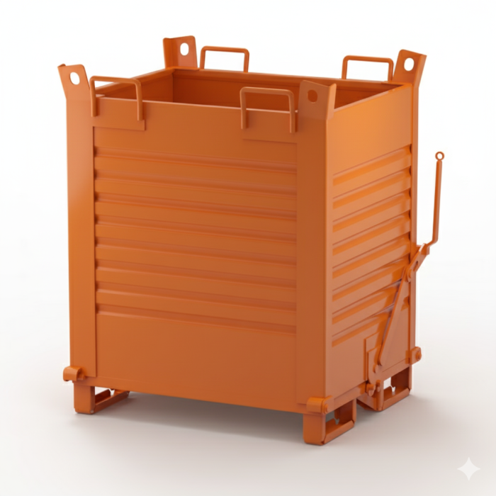 This TITAN drop bottom skip has a capacity of 2000kg. Drop bottom tipping skips are ideal for quick and and safe handling of materials such as waste and scrap. Emptying the skips is easy and the mechanism is operated by a lever, simply pull the lever to open the double flap floor, this mechanism is operated by the driver from the safety of the seat.