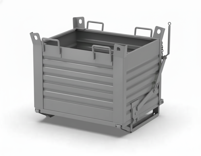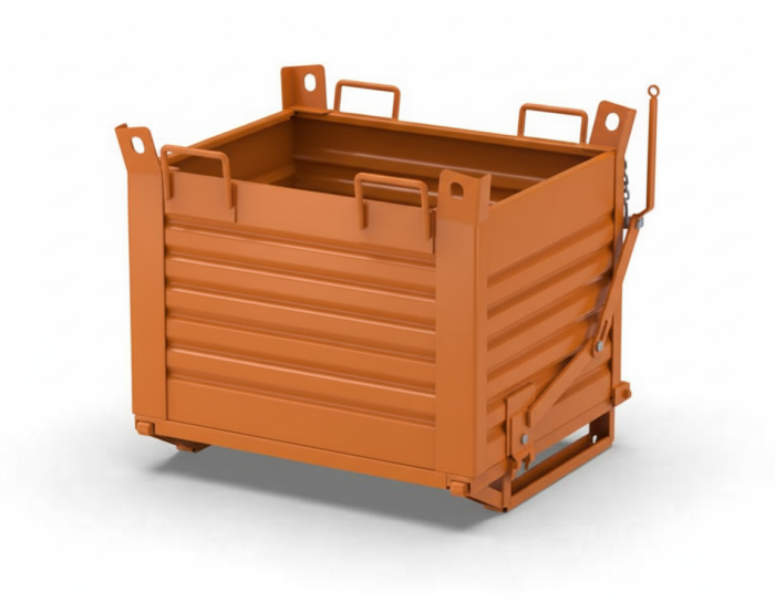 This heavy duty drop bottom skip has a capacity of 2000kg. Drop bottom tipping skips are ideal for quick and and safe handling of materials such as waste and scrap. Emptying the skips is easy and the mechanism is operated by a lever, simply pull the lever to open the single flap floor, this mechanism is operated by the driver from the safety of the seat.