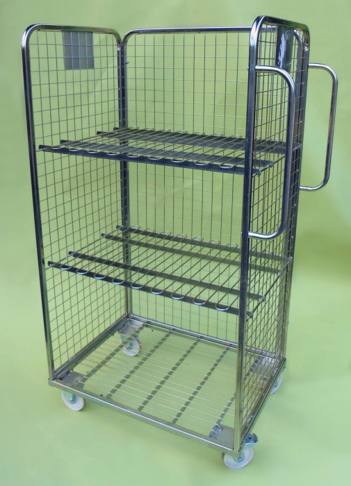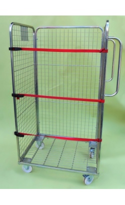 This versatile trolley is a 3 sided trolley used for general mechandising but can be really used to anything. The trolley is a 3 sided cage with the open face on the wide side. Additional shelves are available as an option, as are roll pallet straps. The trolley is rigid in construction, so it does not nest or fold down. On the back panel of the merchandising trolley are a pair of push handles for easy and safe operator use. The trolley is zinc plated for a long life, and is suitable for use within a retail shop store or for general warehousing use.