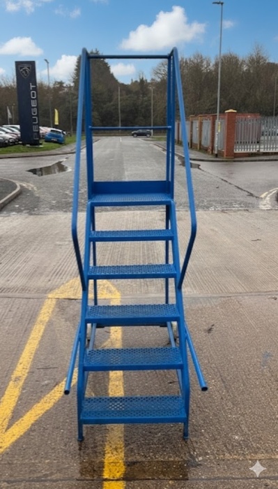 The mobile ladder is fitted with our industrial hi-grip step as standard, also a 100mm kick-plate and safety operating sticker.
