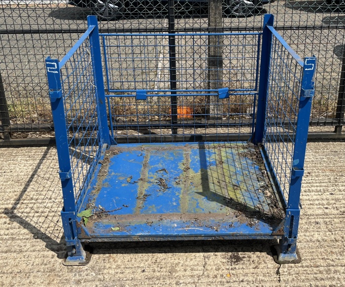 Second hand stillage with 3 mesh sides, two are full sides and one is removable.