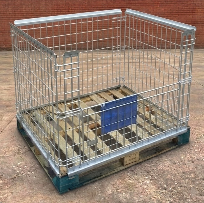 The pallet retension units have a half drop door for easy access to goods, the sides of the unit is comprised of straight rod and the whole unit is zinc plated so this would be perfect for indoor or outdoor use.