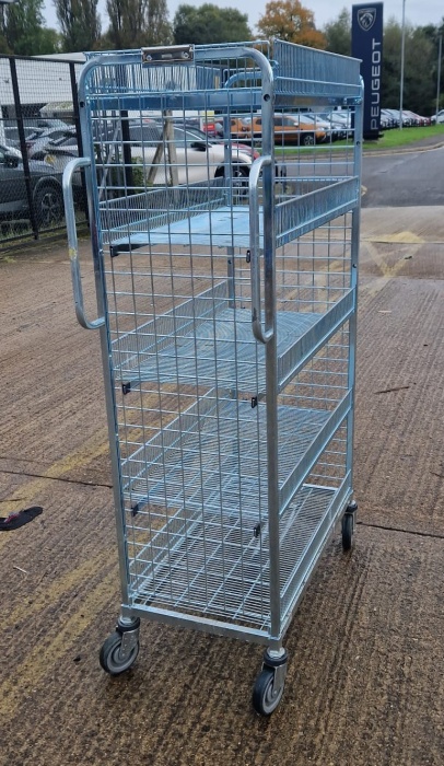 The cage is set on 125mm wheels in swivel castors and has a zinc plated finish.