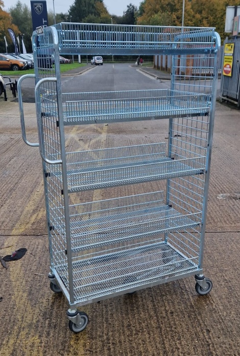 This is a used rod picking trolley, with 3 internal adjustable height and 2 fixed basket shelves .